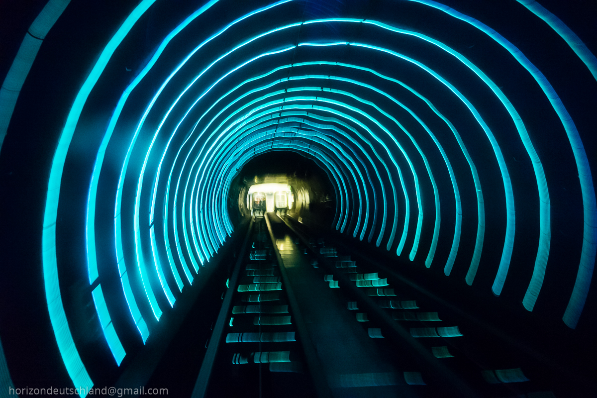 从环球中心下来,坐观光隧道缆车去浦西外滩散步: